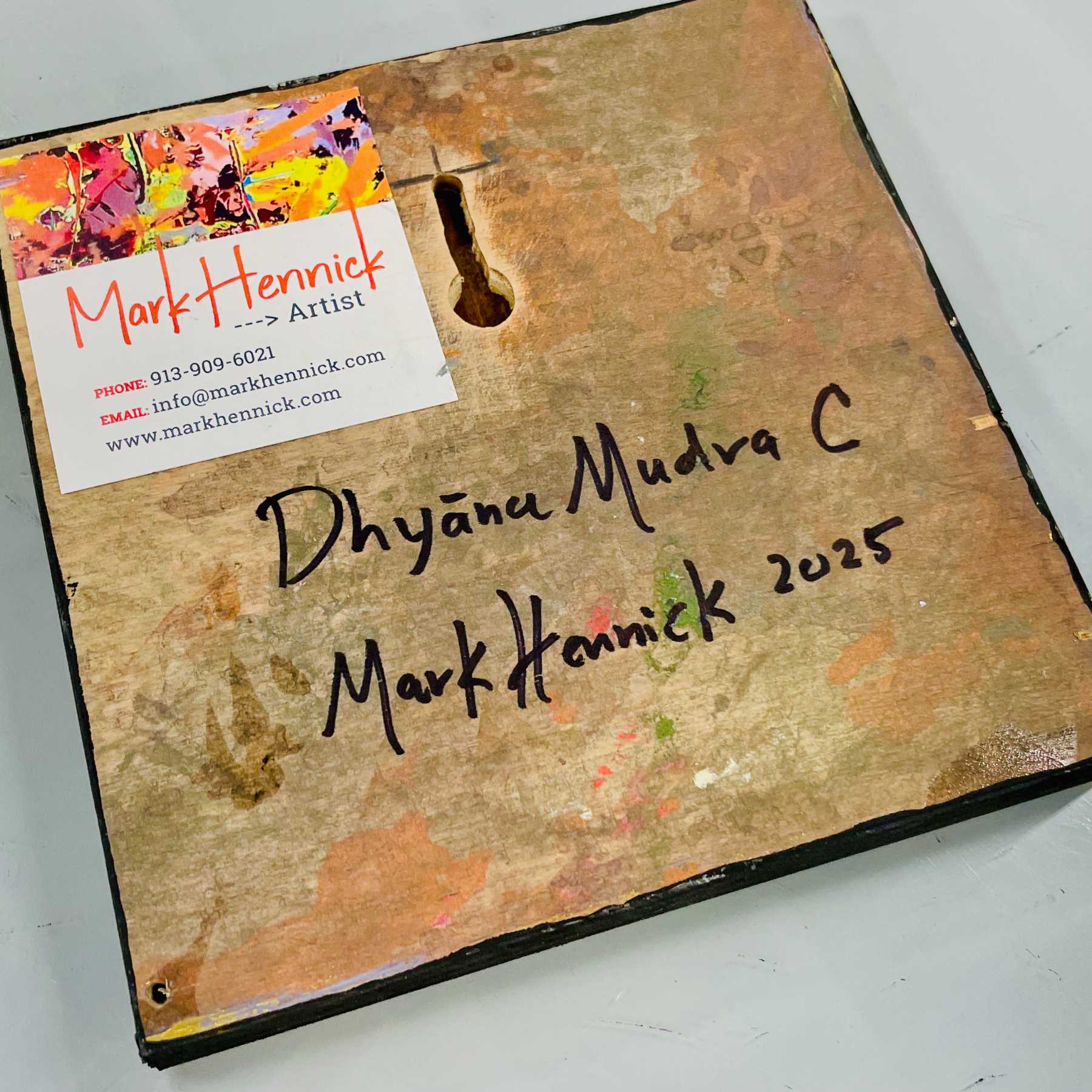Dhyāna Mudra C is a 6″x6″ abstract painting created on 3/4″ birch panel. This painting is inspired by the symbolic hand positions used in yoga and meditation.